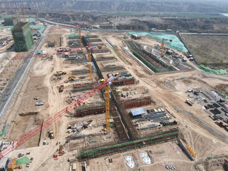 備煤區(qū)域的煤塔施工至30米標(biāo)高,完成土建施工的60%;配煤槽雙曲線漏斗施工完成過半,上部筒倉滑模施工已經(jīng)具備條件;汽車卸料棚深基坑底板基礎(chǔ)完成,正在進(jìn)行地下室部位的施工,總體進(jìn)度完成30%;C型料場在3月上旬完成場地移交后,土建基礎(chǔ)的施工也在加速進(jìn)行,累計已完成基礎(chǔ)澆筑1萬余立方,已經(jīng)分段進(jìn)行料格擋墻上部結(jié)構(gòu)的施工。