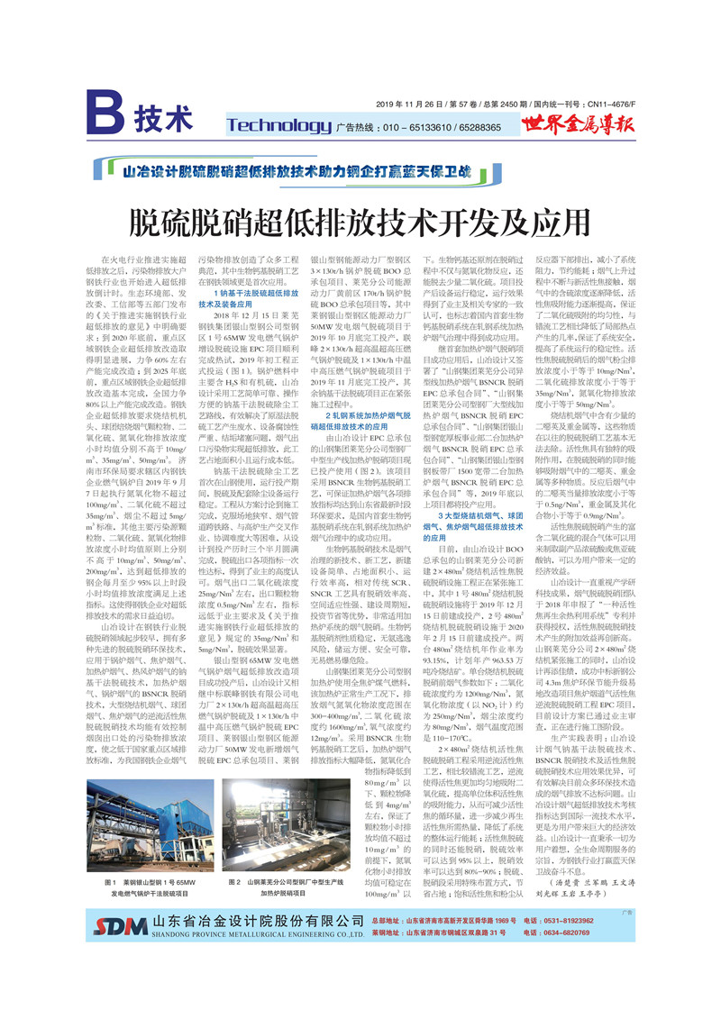 山冶設(shè)計(jì)脫硫脫硝超低排放技術(shù)助力鋼企打贏藍(lán)天保衛(wèi)戰(zhàn)——脫硫脫硝超低排放技術(shù)開(kāi)發(fā)及應(yīng)用