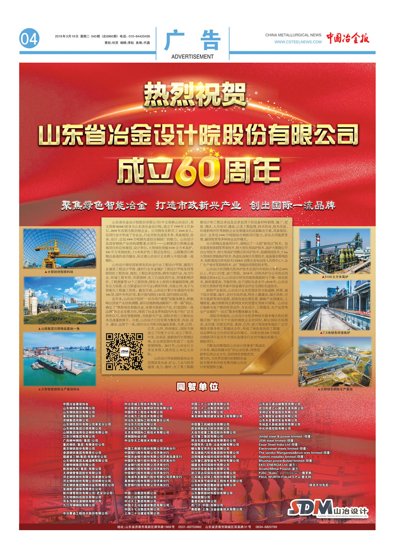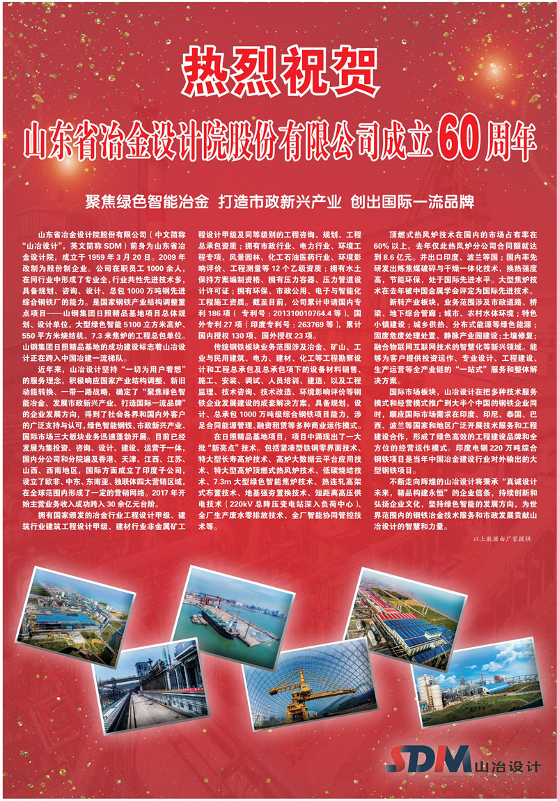 熱烈祝賀山東省冶金設計院股份有限公司成立60周年