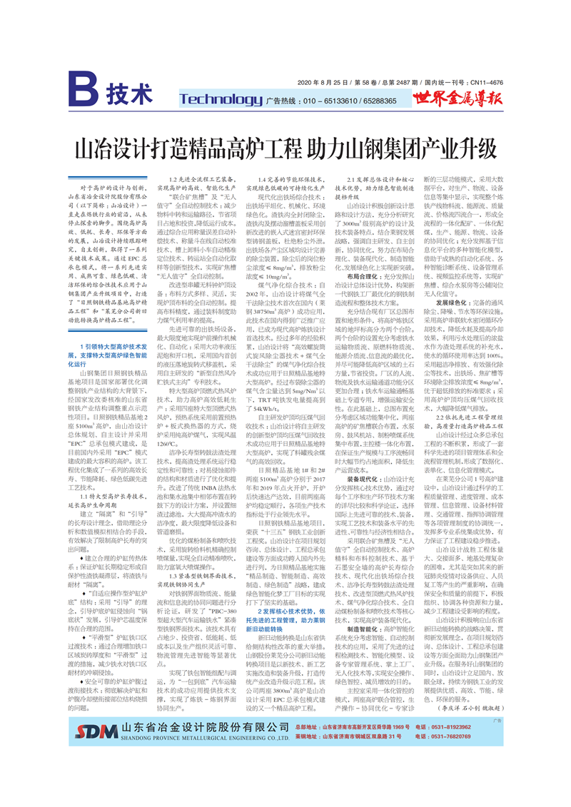 山冶設計打造精品高爐工程 助力山鋼集團產(chǎn)業(yè)升級